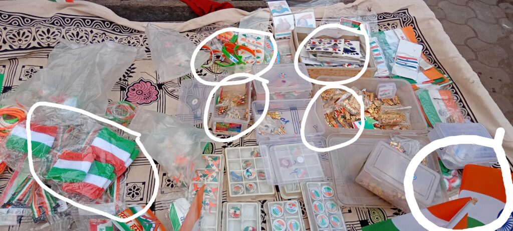 प्रखर राष्ट्रवाद न्यूज़। हिंदुस्तान एक धर्म निरपेक्ष देश होने के साथ साथ हिंदुस्तान के ध्वज की मान सम्मान के लिए देश के सीमा में रक्षा के लिए हिंदुस्तानी बल भी अपनी ध्वज के लिए अपनी जान की बाज़ी लगाकर ध्वज की आन बान शान की रक्षा करते हैं। इसमें हिंदुस्तान के भीतर रहने वाले एक एक हिंदुस्तानी भी अपने तिरंगा के लिए अपनी जान न्यौछावर करने के लिए तैयार रहते हैं। लेकिन कुछ जगहों पर तिरंगा के तो रंग ही लाल हो चुके हैं और उसे चंद रूपियों के लिए धड्डले से बेच रहे हैं। राष्ट्रीय गौरव सम्मान अधिनियम 2005 के अंतर्गत ध्वज को अनुचित ढंग से रखने और बेचने के लिए या ध्वज का तौहीन के लिए सख़्त और कड़ी कार्यवाही होती है। जिले में जगह जगह खुलेआम लाल रंग के झंडे बेचे जा रहे हैं। जिसे प्रशासनिक अधिकारी भी देखकर अनदेखा कर राष्ट्रीय गौरव सम्मान अधिनियम की धज्जियां उड़ रही है। गौरतलब है कि भारत सरकार ने अनेक पहलू पर बल दे रही है लेकिन प्रशासन को जानकारी होते हुए भी क्या उस पर रोक या कार्यवाही होगी ?