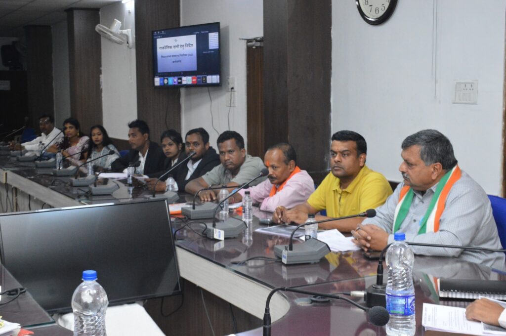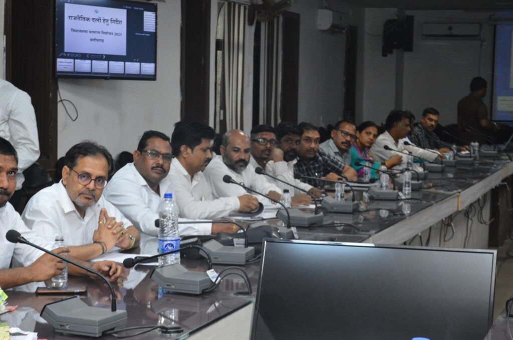 विधानसभा निर्वाचन 2023 के संदर्भ में आज कलेक्टर एवं जिला निर्वाचन अधिकारी सौरभ कुमार द्वारा विभिन्न राजनीतिक दलों के प्रतिनिधियों की बैठक कलेक्ट्रेट सभागार में ली गई। बैठक के दौरान आदर्श आचरण संहिता के संबंध में विस्तार से जानकारी प्रतिनिधियों को उपलब्ध कराई तथा संहिता का आवश्यक रूप से पालन करने की अपेक्षा राजनीतिक दलों से की। बैठक के दौरान कलेक्टर श्री सौरभ कुमार ने कहा कि प्रत्येक राजनीतिक दल एवं अभ्यर्थी को जातीय, धार्मिक विषयों से बचकर अपना प्रचार-प्रसार करना चाहिए तथा किसी भी व्यक्ति के घर के सामने धरना प्रदर्शन नहीं किया जाना चाहिए। उन्होंने कहा कि निर्वाचन के दौरान सक्षम स्वीकृति प्राप्त कर ही जुलूस, रैली एवं सभा का आयोजन किया जाय तथा पुलिस को भी इसकी सूचना दी जाय। उन्होंने बताया कि निर्वाचन आयोग के दिशा निर्देशों के अनुसार सभा आदि के आयोजन में की जाने वाली टेंट, कुर्सी, माईक, पण्डाल तथा अन्य सामग्रियों की संख्या आदि की जानकारी अनिवार्य रूप से निर्वाचन कार्यालय को दी जानी चाहिए। जिला निर्वाचन कार्यालय द्वारा इसकी वीडियोग्राफी भी कराई जाएगी। उन्होंने कहा कि जुलूस आदि के दौरान यदि किसी व्यक्ति द्वारा बाधा पहुंचायी जाती है तो राजनीतिक दल स्वंय उस पर कार्यवाही न करें तथा कानून अपने हाथ में न लें, इसकी सूचना पुलिस को दें साथ ही जुलूस के दौरान उपस्थित पुलिस बल इस पर कार्यवाही करेगा। उन्होंने बताया कि पुतला दहन आदि पूर्णरूप से प्रतिबंधित रहेगा। इसके साथ ही आदर्श आचरण संहिता लागू हो चुकी है अतः कोई भी भूमिपूजन, लोकार्पण तथा घोषणाएं प्रतिबंधित रहेगी।